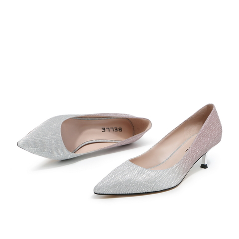 BELLE/百丽渐变条纹亮片优雅通勤女高跟鞋3M702AQ0