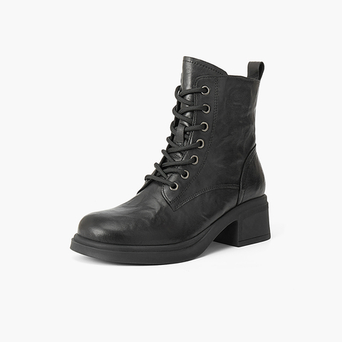 百丽复古高跟马丁靴女2025冬新商场同款真皮休闲短靴3NW45DD5