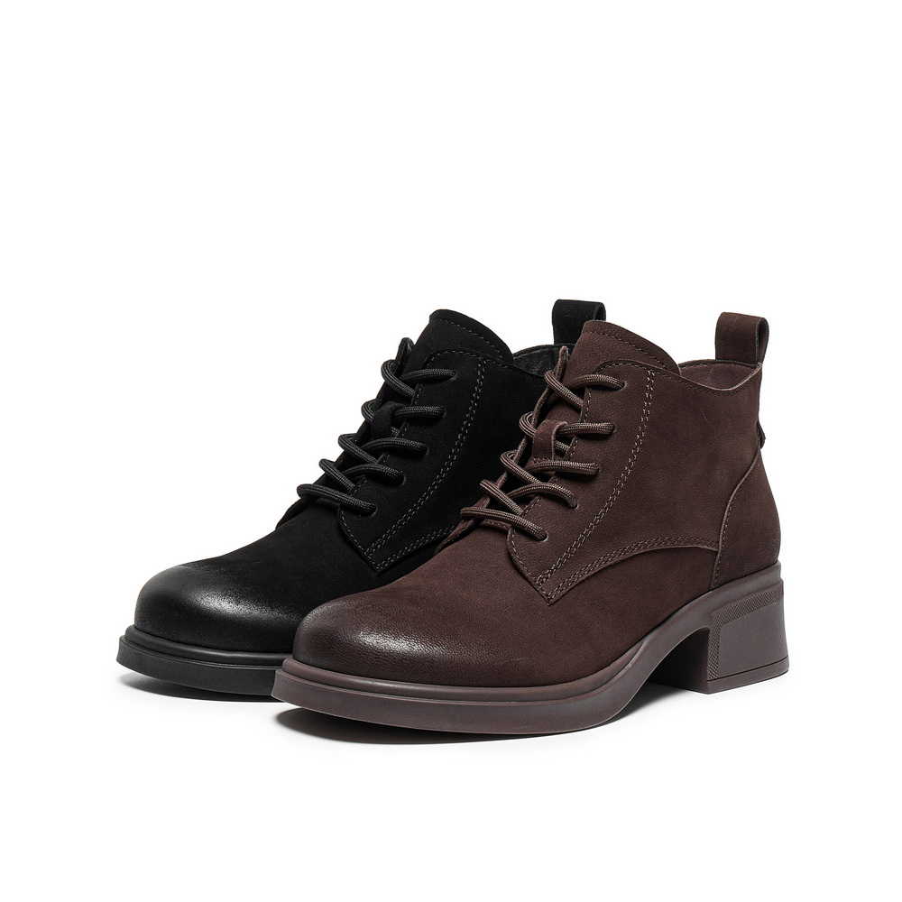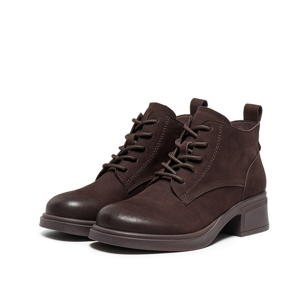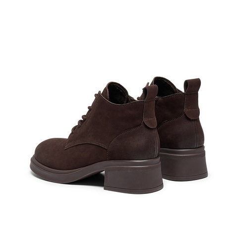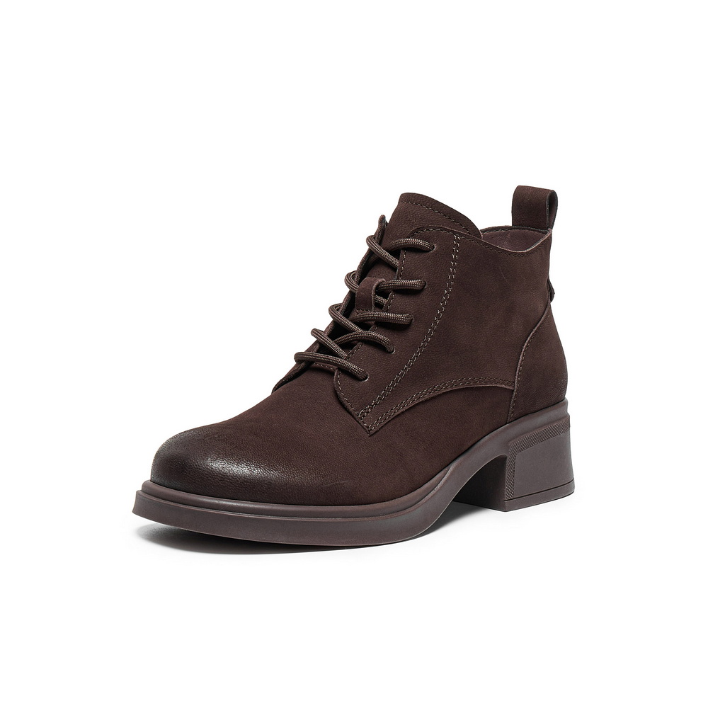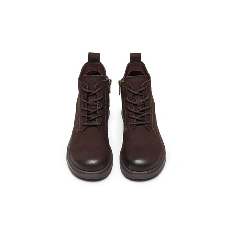 百丽简约复古马丁靴女2025冬新真皮粗跟增高百搭休闲短靴3NW51DD5