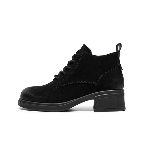 百丽简约复古马丁靴女2025冬新真皮粗跟增高百搭休闲短靴3NW51DD5
