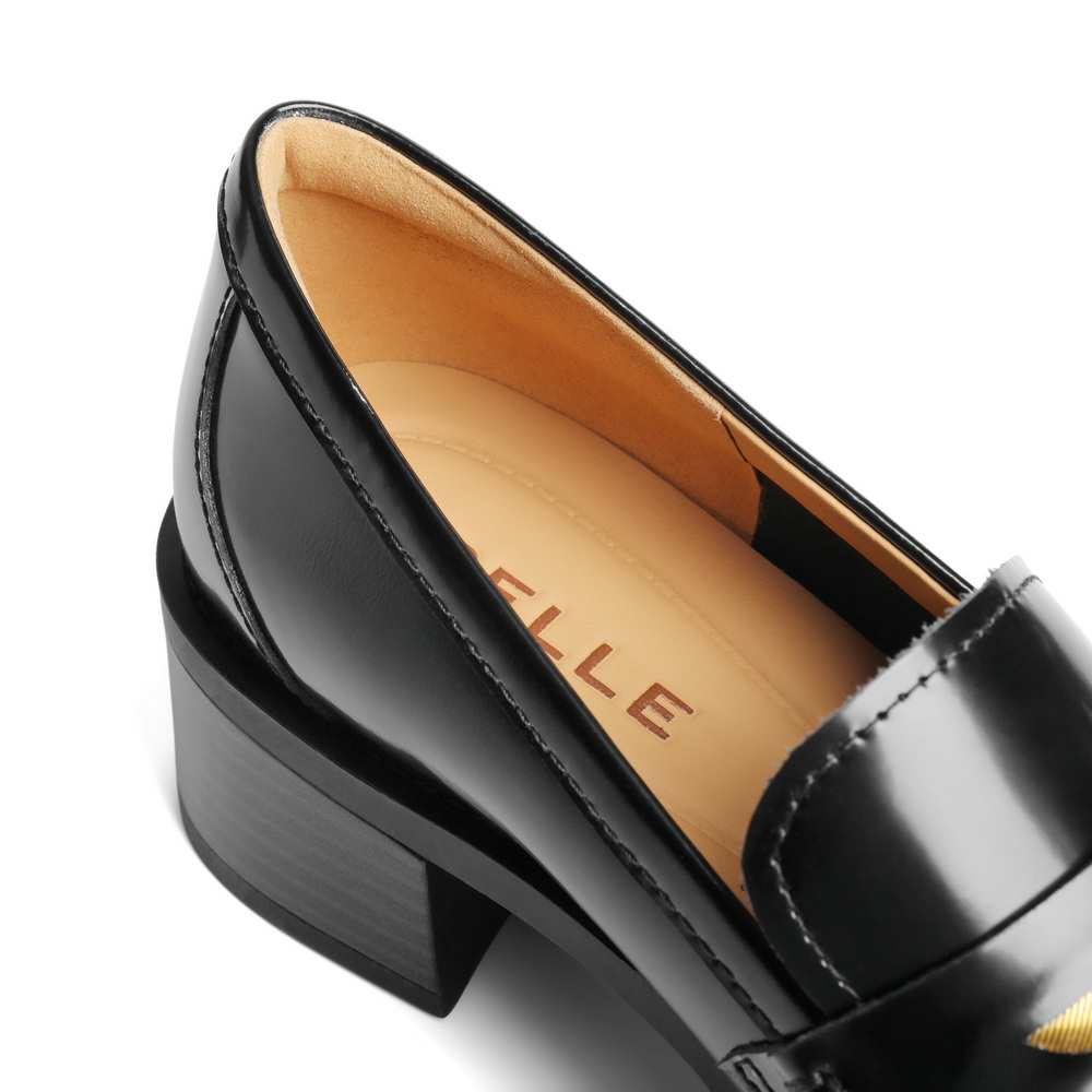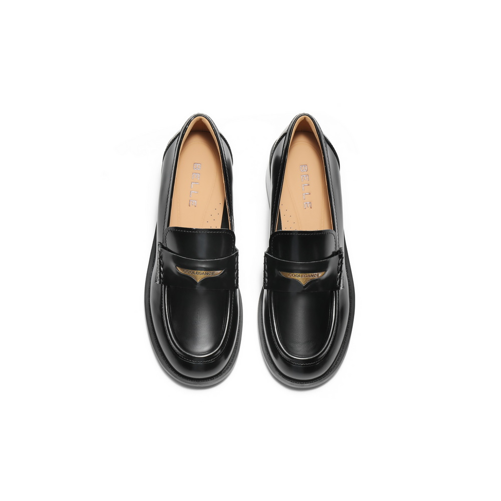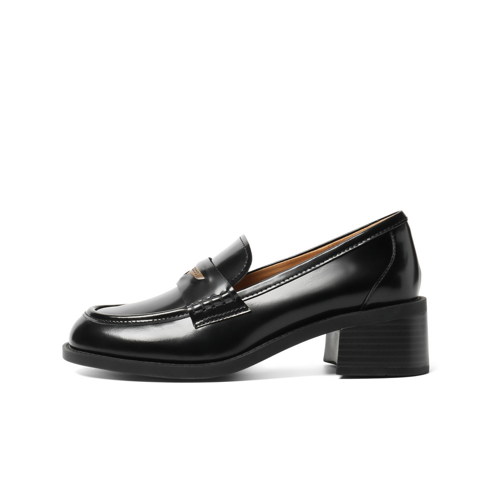 百丽气质高跟乐福鞋女2025秋新商场同款真皮通勤乐福鞋3PAF2CA5