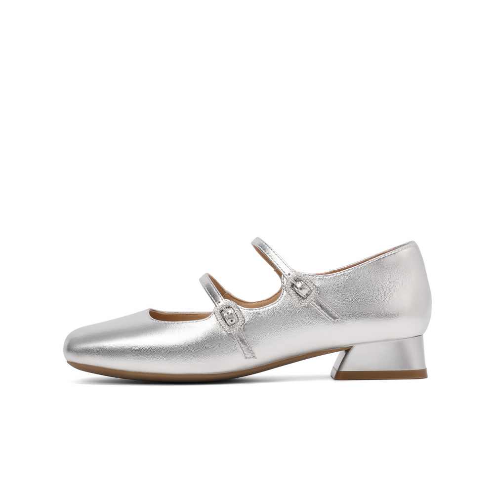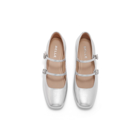 百丽气质时装玛丽珍鞋女2025春新商场同款真皮双条带单鞋3QA17AQ5