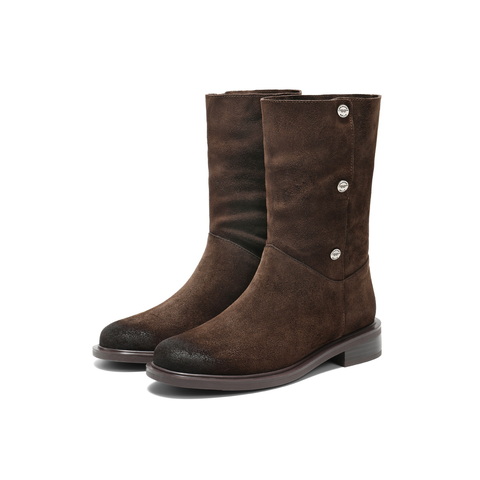 百丽复古两穿时装靴女2025冬新商场同款廓形显瘦西部靴3QF66DS5