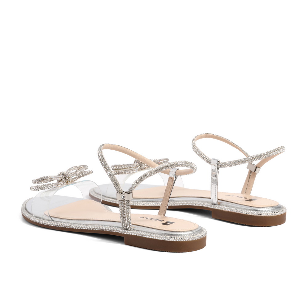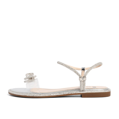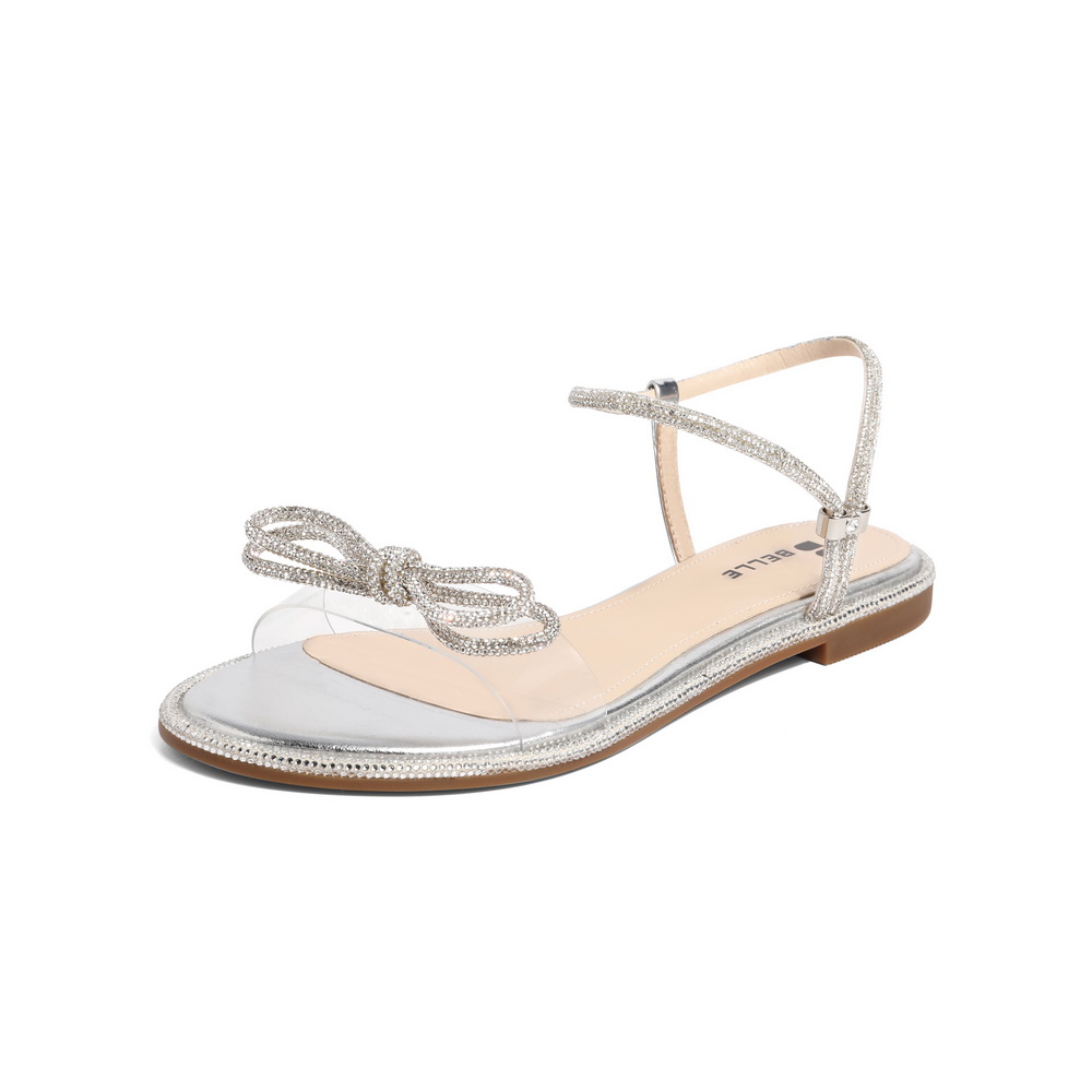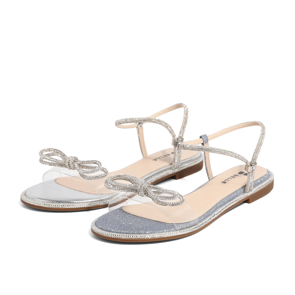 百丽2021女蝴蝶结平底鞋星辰一字带仙女凉鞋3RA37BL1