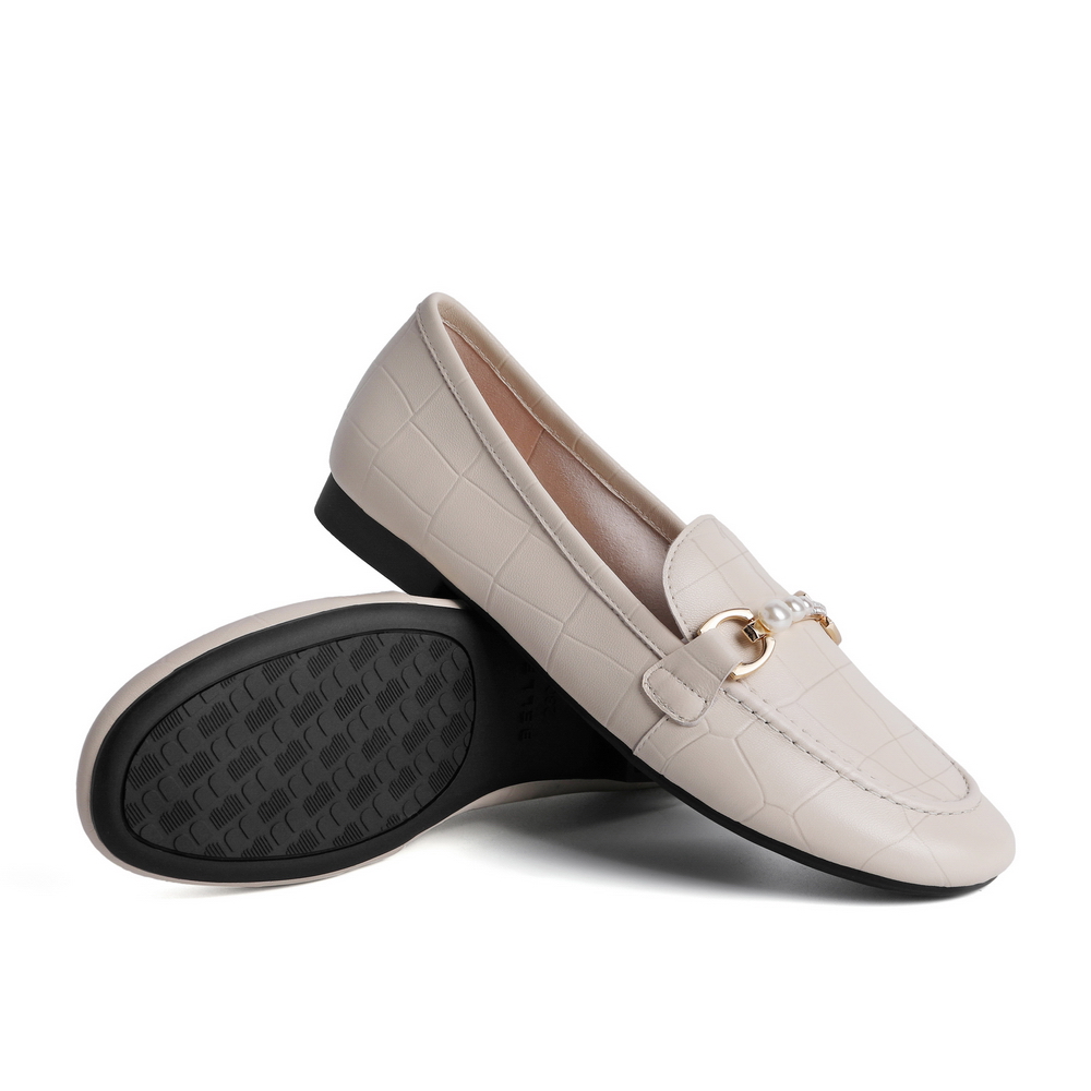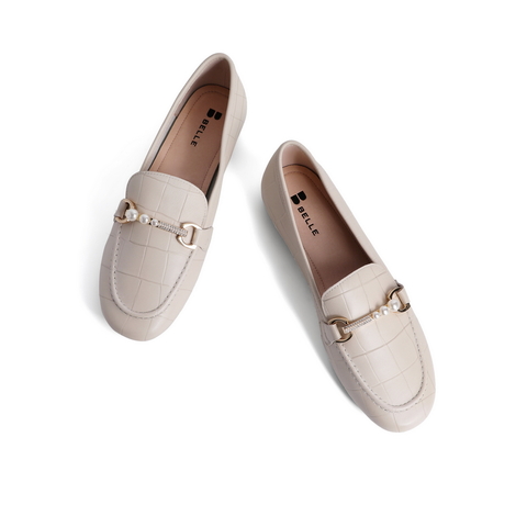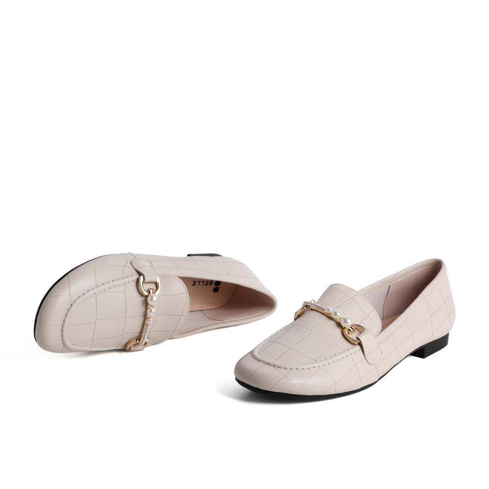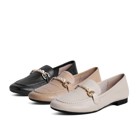 百丽石头纹乐福鞋女2021春新款珍珠羊皮革女休闲小皮鞋59716AQ1