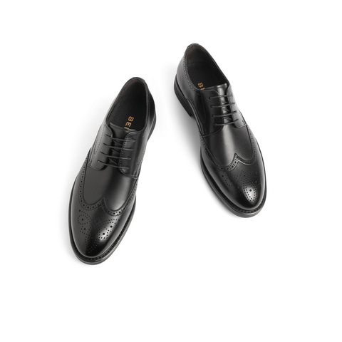 百丽通勤商务鞋男2023春新商场同款牛皮革雕花正装皮鞋7TN01AM3