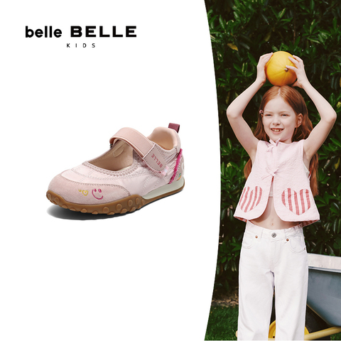 百丽撞色德训鞋女童2025秋新款商场同款魔术贴薄底休闲鞋80030C85