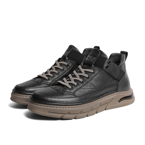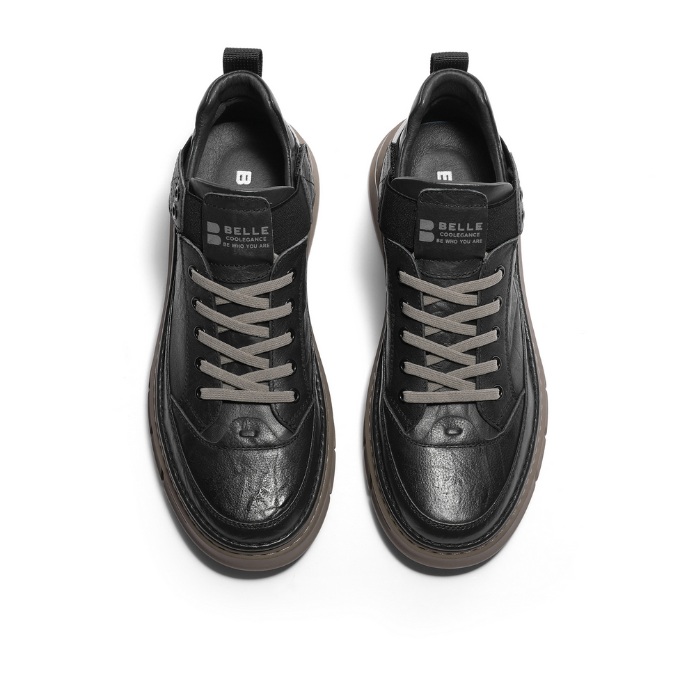百丽厚底休闲鞋男2023冬新商场同款复古工装高帮板鞋8CY01DM3