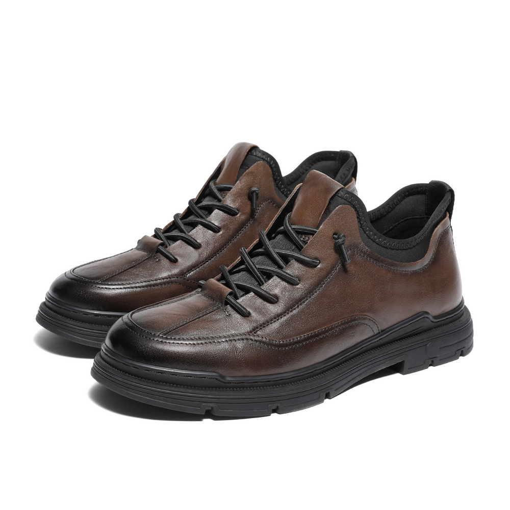 免系带厚底商务休闲皮鞋