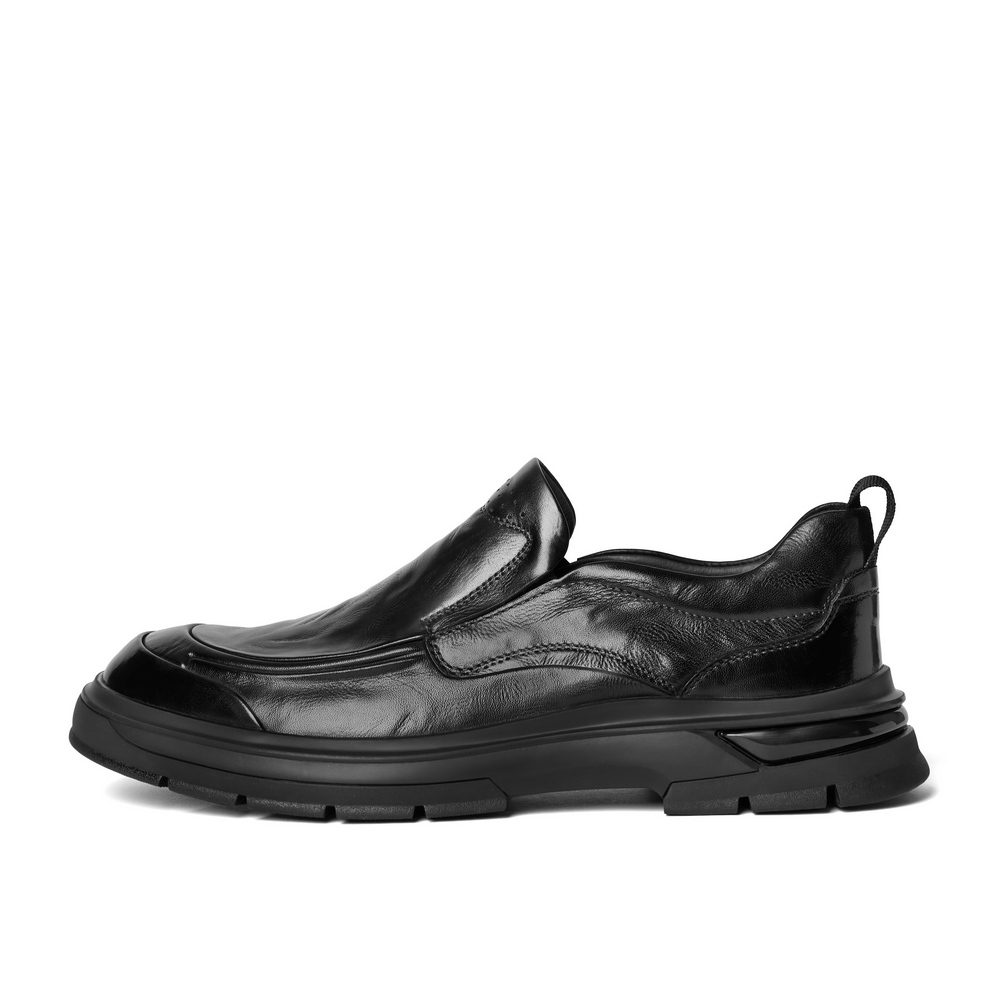 百丽褶皱商务鞋男2024冬新商场同款牛皮革一脚蹬休闲皮鞋8ND02DM4