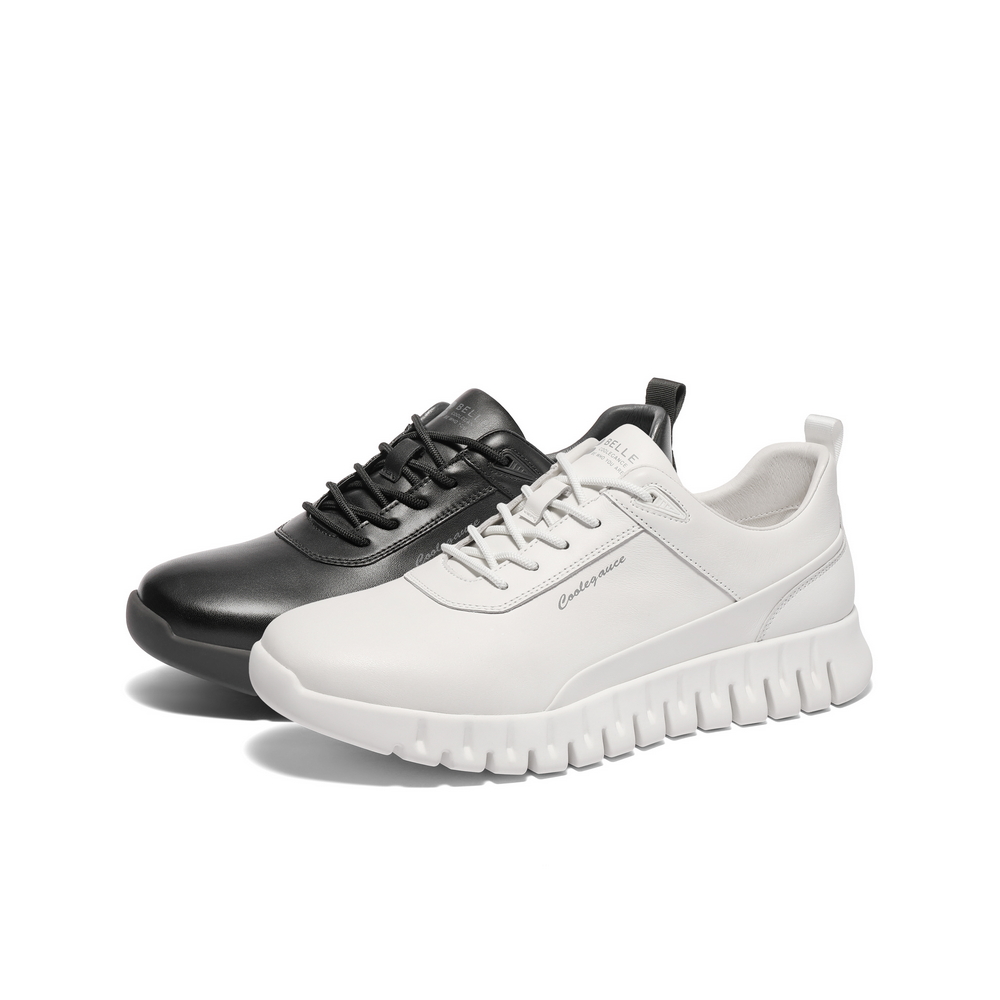 百丽厚底休闲健步鞋男2025春新商场同款牛皮革商务运动鞋8QL01AM5