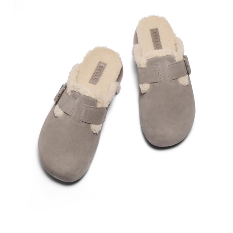 百丽保暖休闲勃肯鞋男鞋2025新款冬季可外穿厚底包头拖鞋A2233DM5