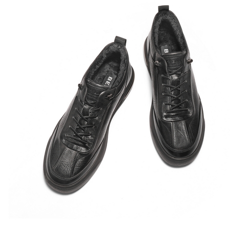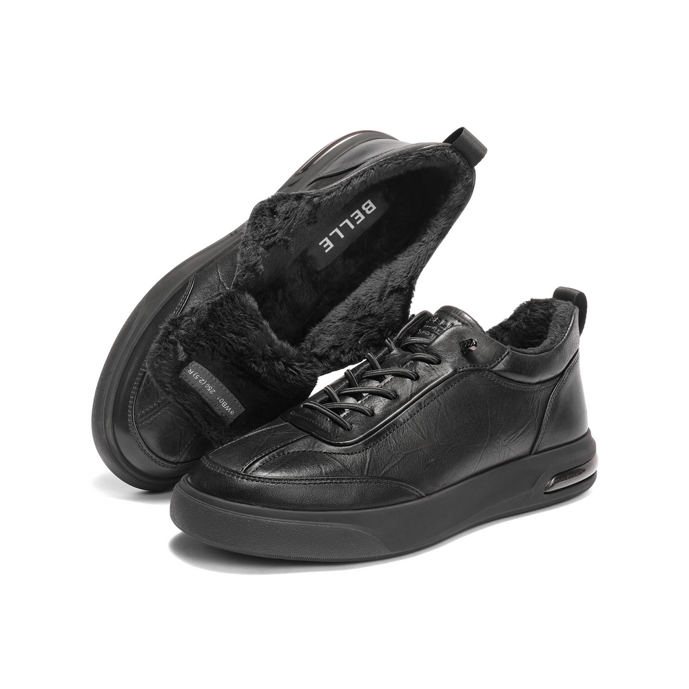 百丽高帮板鞋男2025新款冬季商场同款牛皮革厚底休闲鞋8WB01DM5
