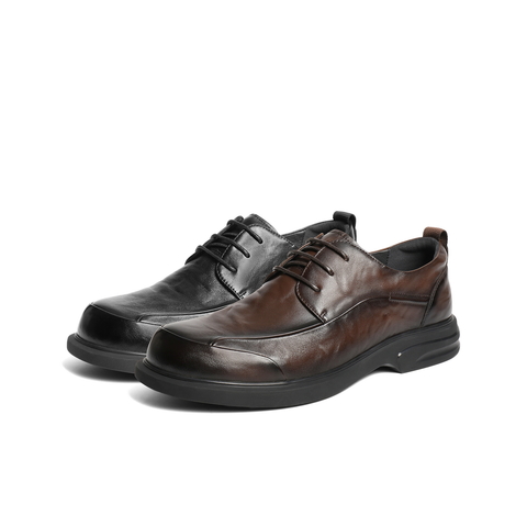 质感牛皮革舒适系带商务休闲皮鞋