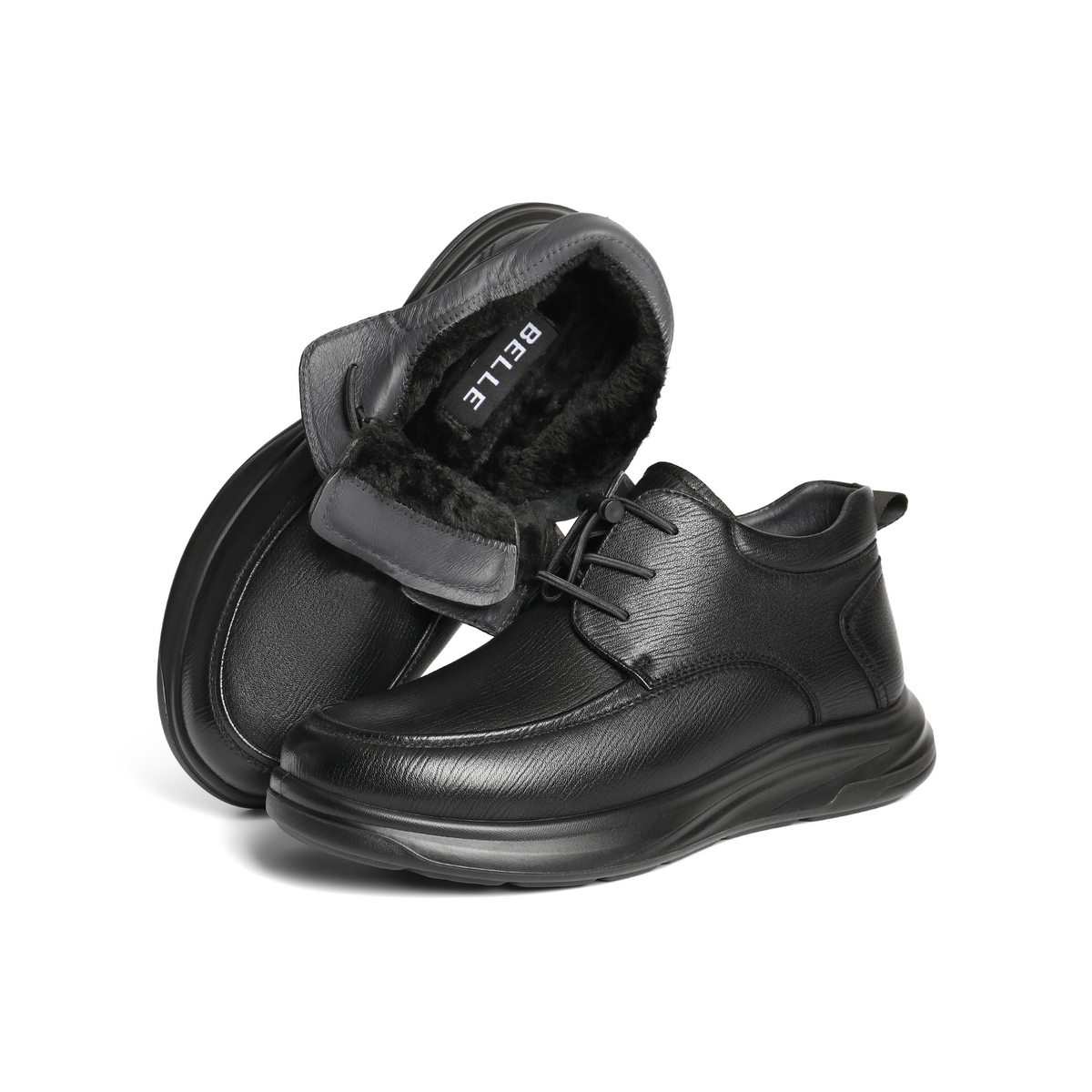 质感羊皮革厚底保暖高帮商务靴