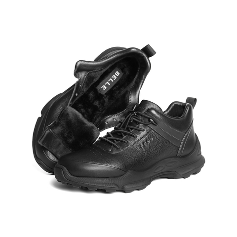 百丽高帮休闲运动鞋男2025新冬商场款牛皮革厚底保暖短靴8ZR01DD5