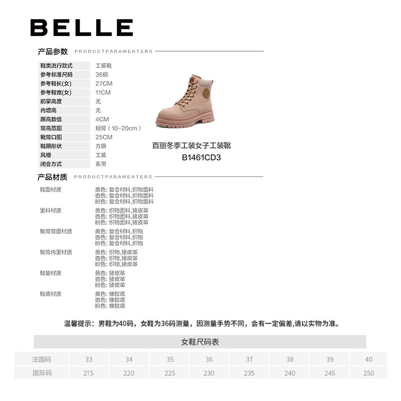 百丽户外大黄靴女2023秋新辣妹帅气工装靴B1461CD3