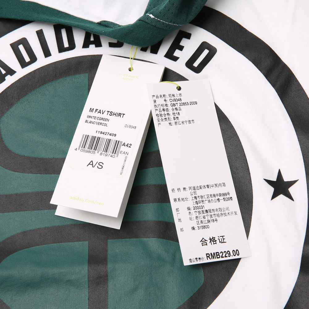 adidas neo阿迪休闲男子M FAV TSHIRT圆领短T恤CV9348