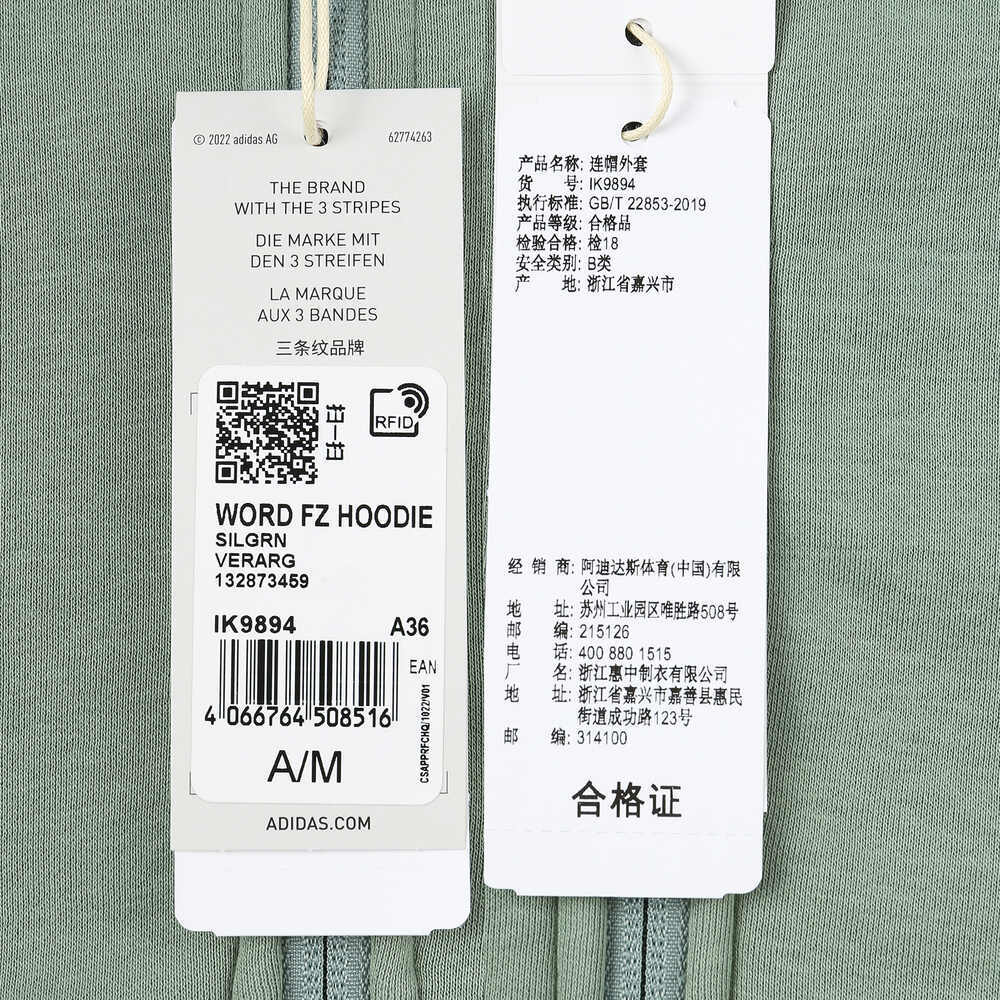 adidas阿迪达斯2023女子WORD FZ HOODIE针织外套IK9894