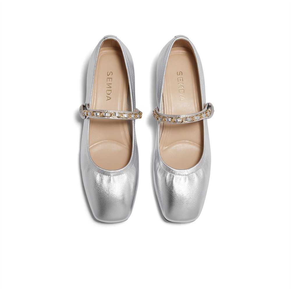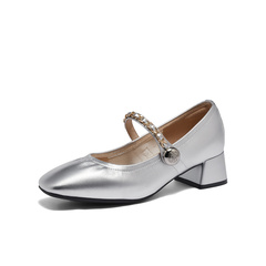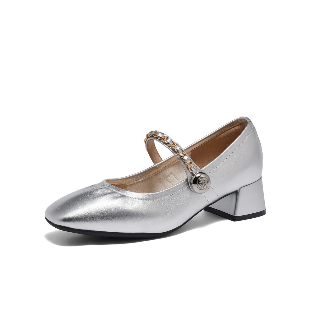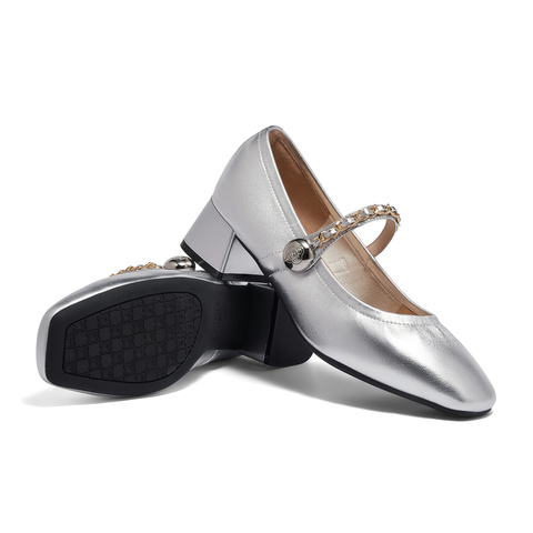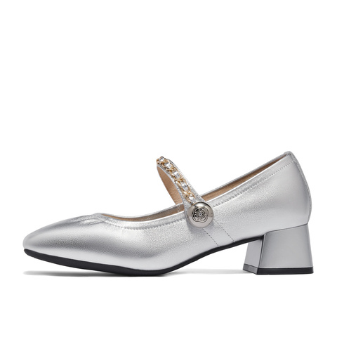 森达银色玛丽珍鞋女款2024秋季新款商场同款方头粗跟单鞋XAB01CQ4