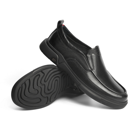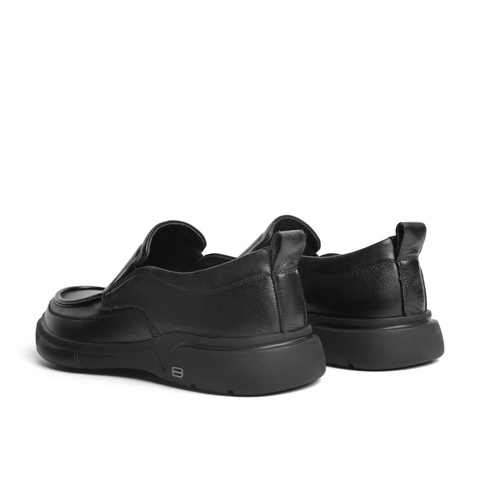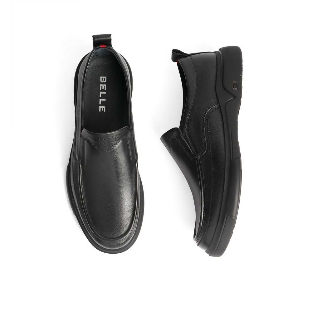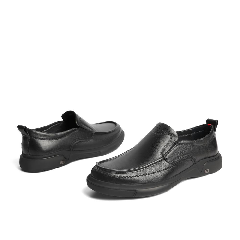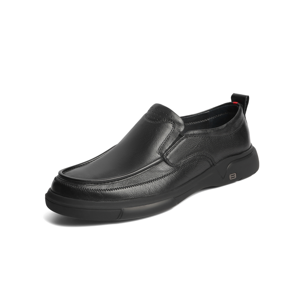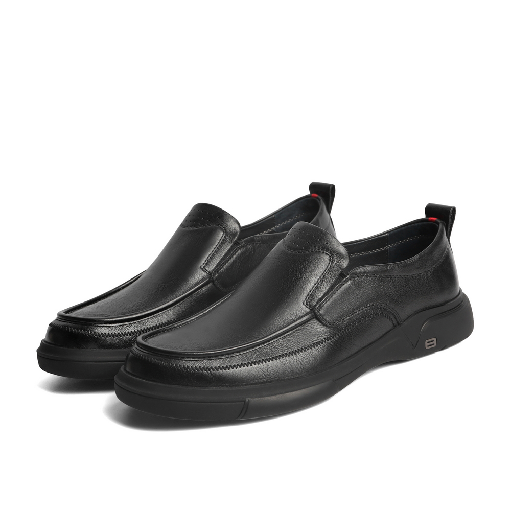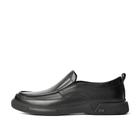 百丽男鞋商务休闲皮鞋2022春新牛皮革套脚黑色休闲单鞋A0643AM2