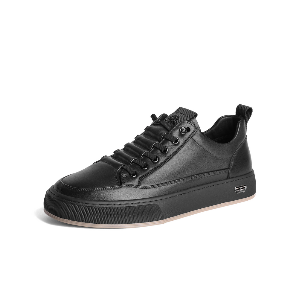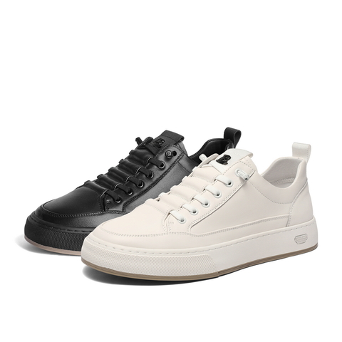 百丽时尚百搭小白鞋男2023秋新牛皮革免系带舒适休闲板鞋A1230CM3