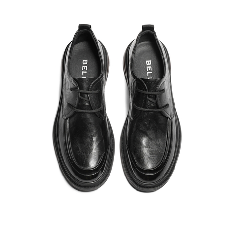 百丽通勤商务鞋男士2025秋季新款牛皮革褶皱低帮休闲皮鞋A1365CM5