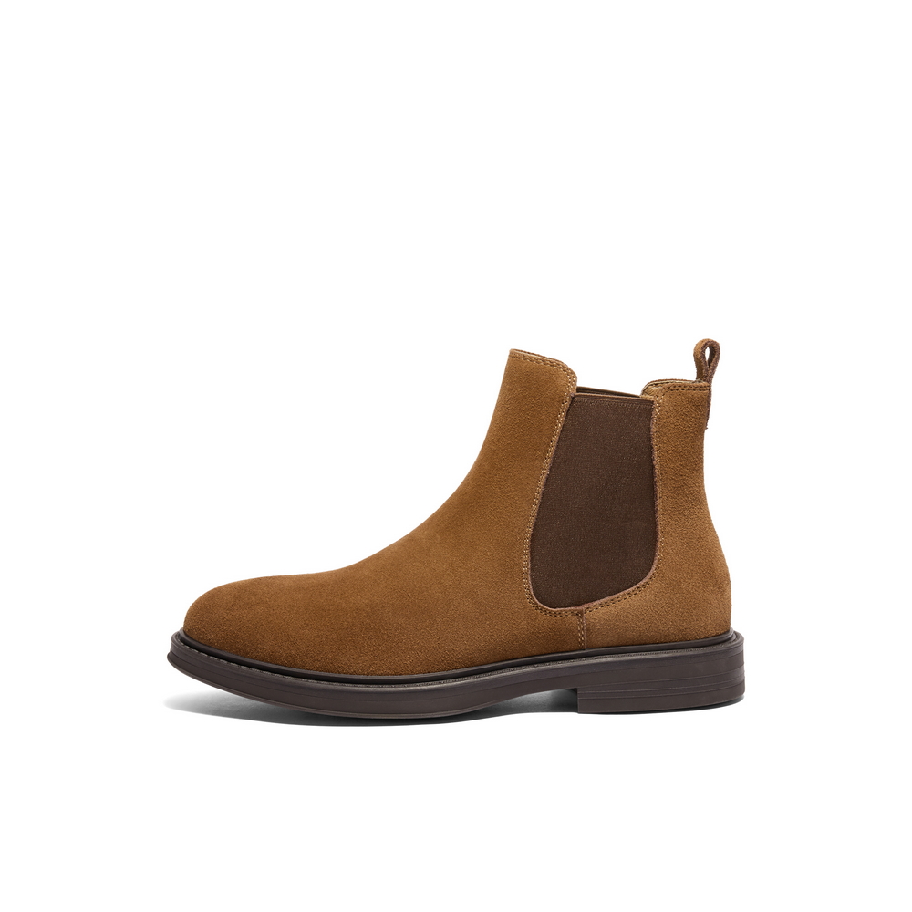 百丽户外潮搭休闲靴男靴2024冬新英伦风短靴切尔西靴加绒A1691DD4