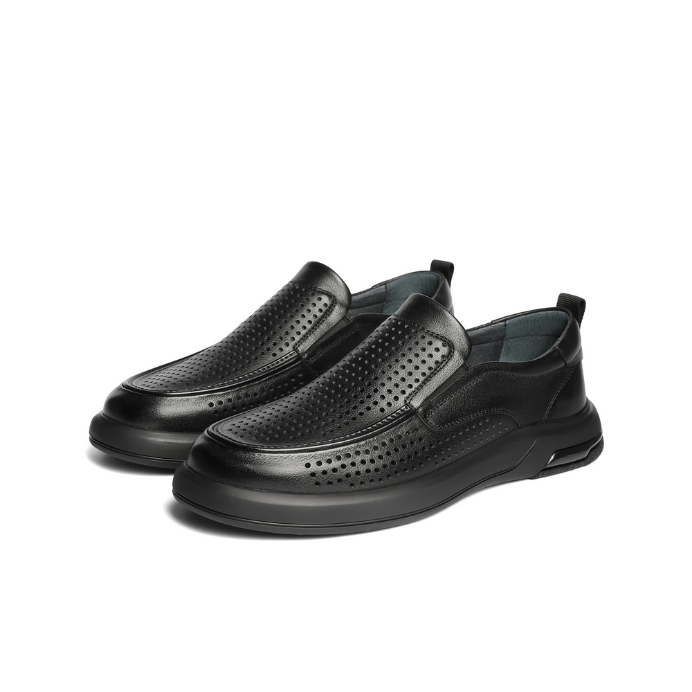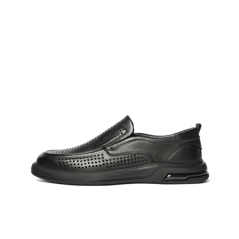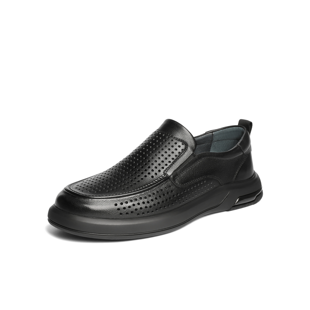 百丽打孔透气商务鞋男2025夏新牛皮革厚底一脚蹬休闲皮鞋A1937BM5