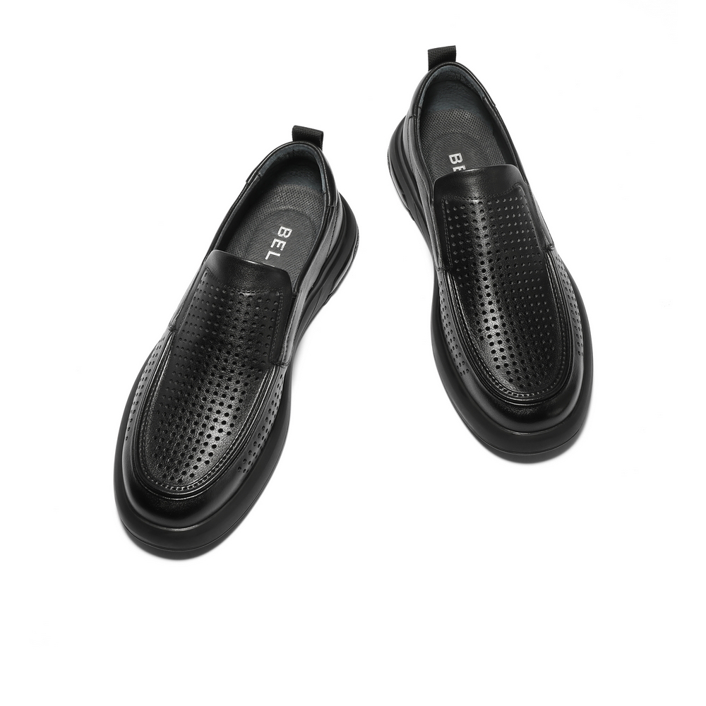 打孔透气一脚蹬厚底商务休闲皮鞋