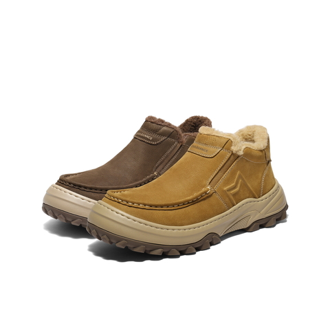 百丽套筒休闲雪地靴男2026新款春季牛皮厚底保暖靴东北靴A2285AD6