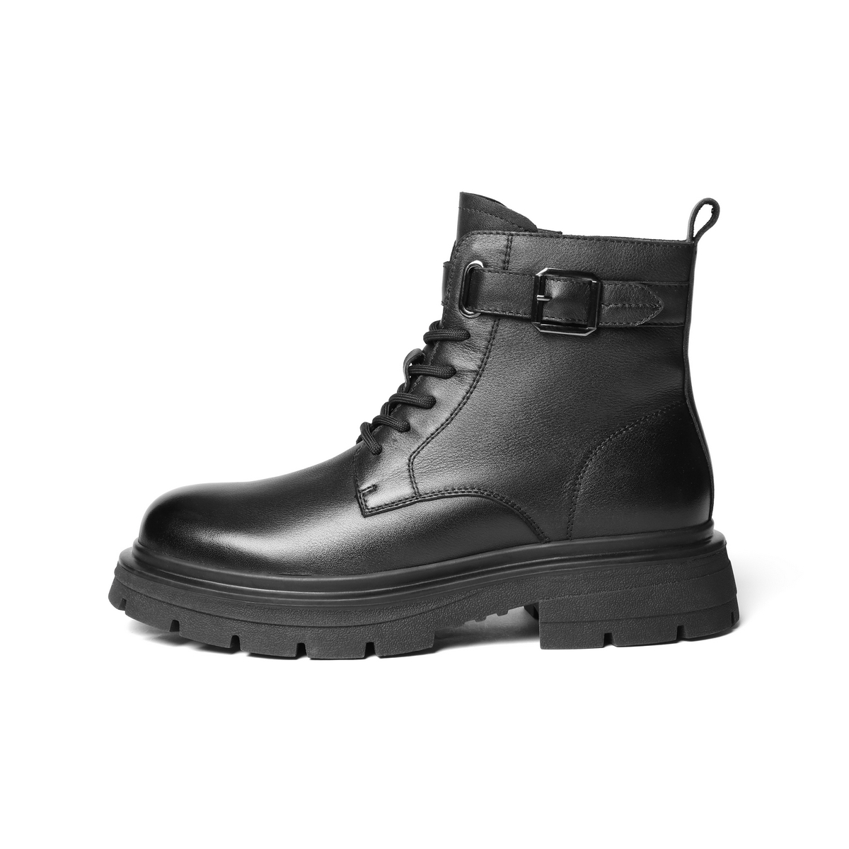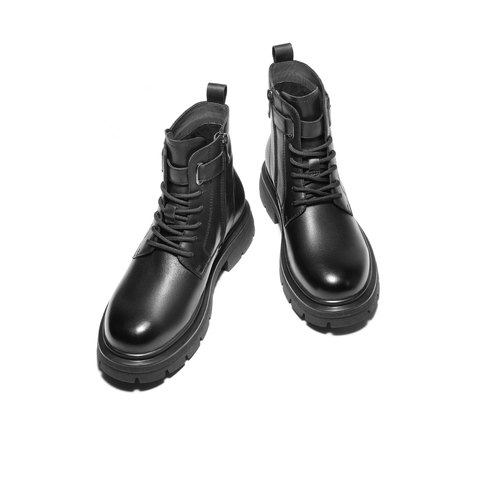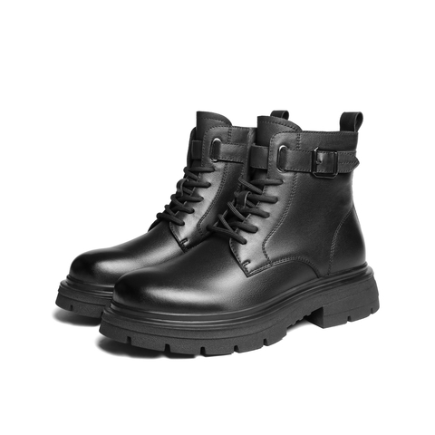 百丽时尚休闲靴男2025新款冬季牛皮革潮搭厚底马丁靴加绒A2287DD5