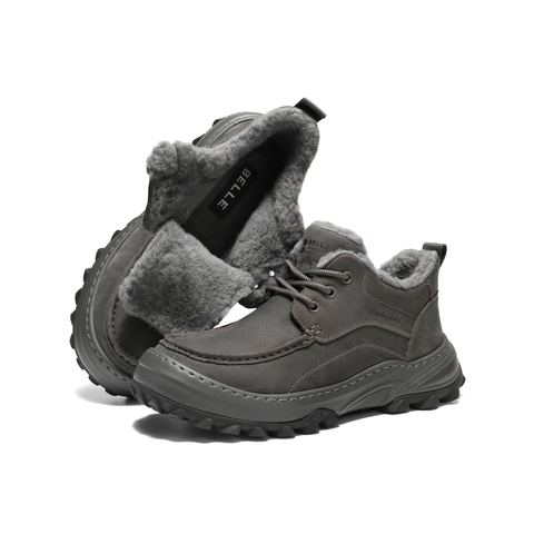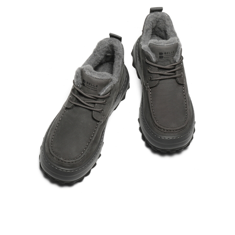 百丽高帮休闲保暖鞋男2026新春季牛皮革厚底潮搭工装短靴A2319AD6