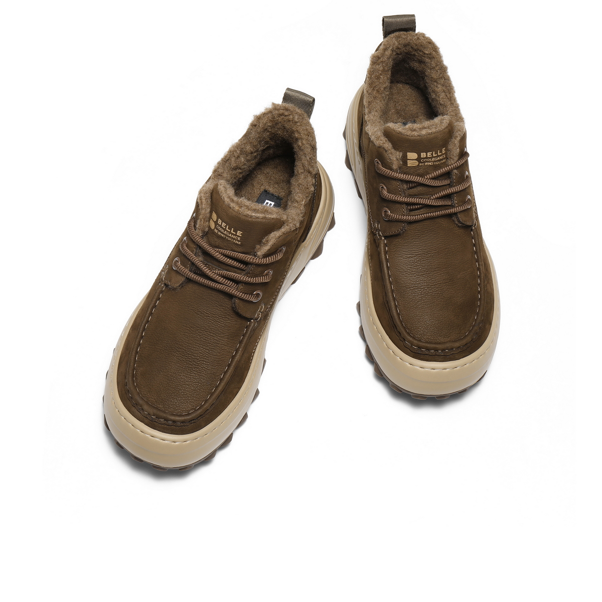 百丽高帮休闲保暖鞋男2026新春季牛皮革厚底潮搭工装短靴A2319AD6