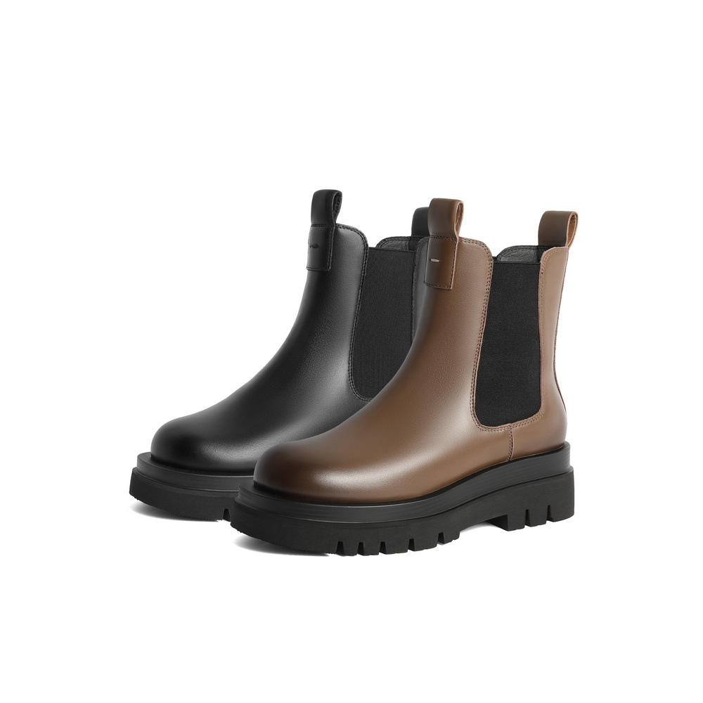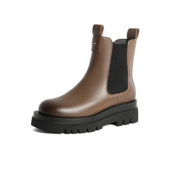 百丽复古烟筒靴女2023冬新商场同款牛皮革厚底百搭短靴A2Z1DDD3