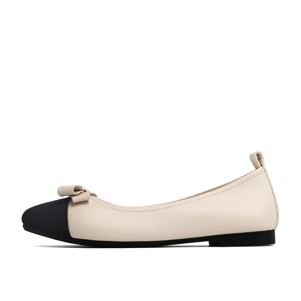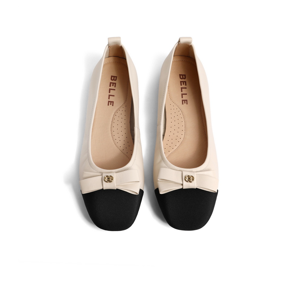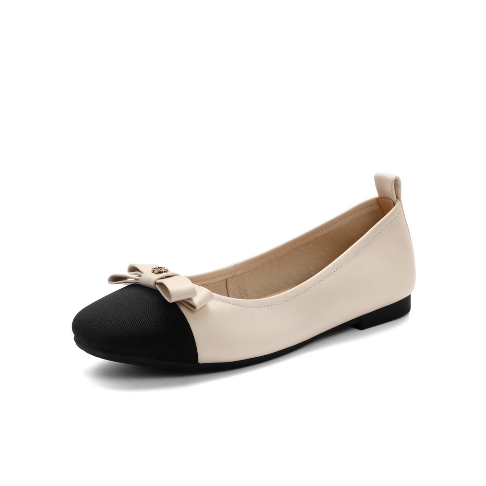百丽小香风平跟单鞋女2023春新蝴蝶结通勤浅口鞋B1137AQ3