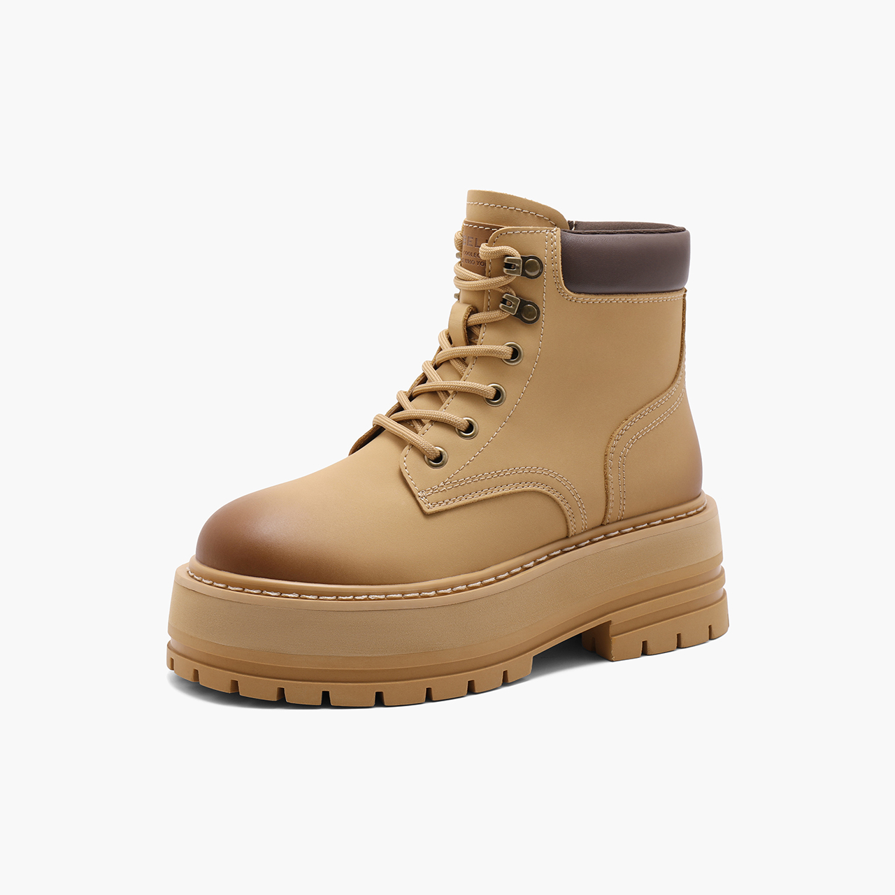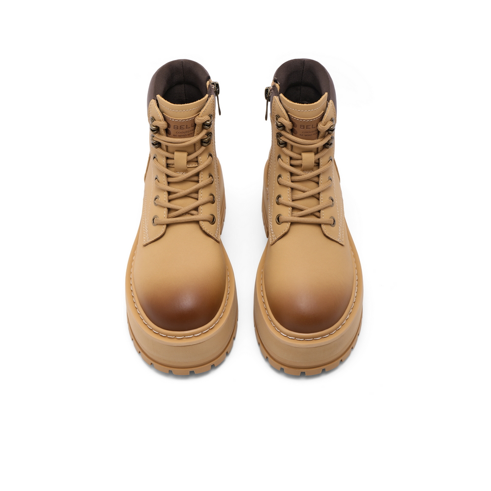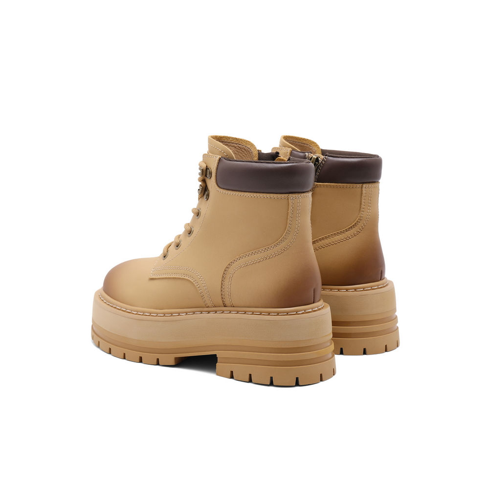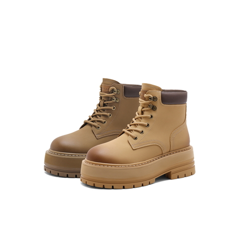 百丽厚底增高工装靴女2024冬新复古英伦风短靴B2141DD4