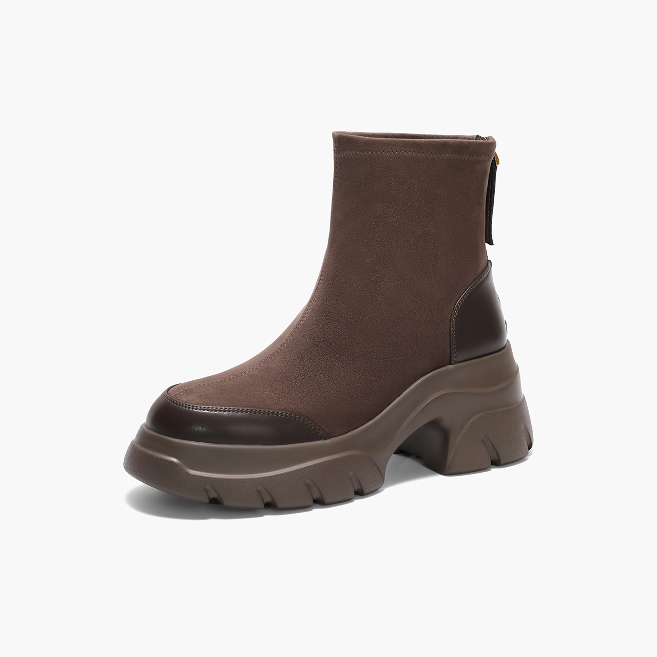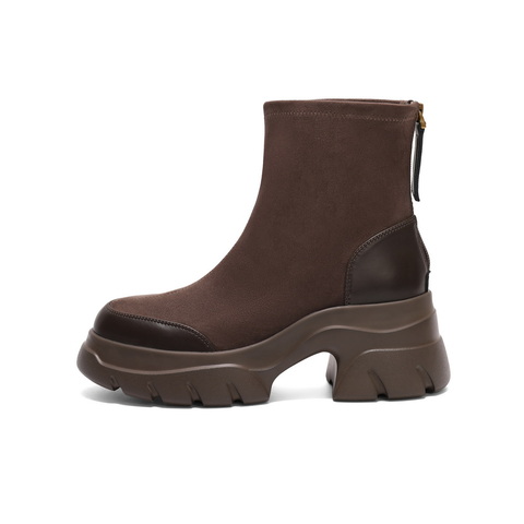 百丽职场气质弹力靴2024冬新真皮厚底短靴B2358DD4
