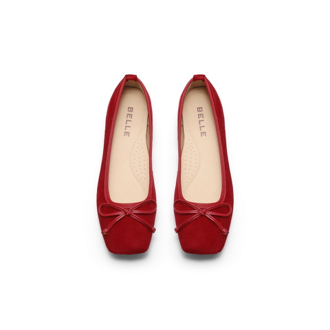 百丽蝴蝶结平底便鞋2025春新真皮质感浅口单鞋B2434AQ5