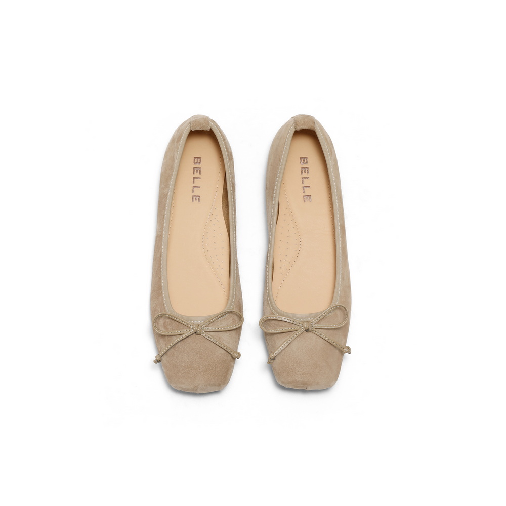 百丽蝴蝶结平底便鞋2025春新真皮质感浅口单鞋B2434AQ5