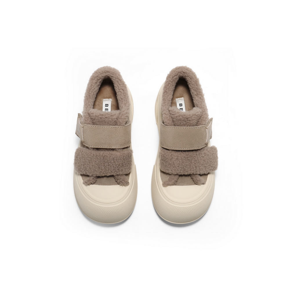 百丽简约舒适毛毛鞋女2025春新厚底保暖休闲鞋B2490AM5