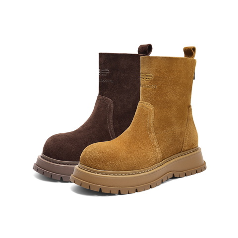 百丽复古时尚时装靴女2025冬新厚底增高舒适休闲短靴B2909DZ5