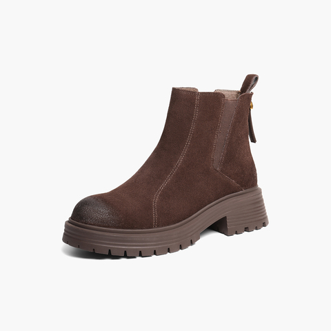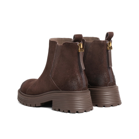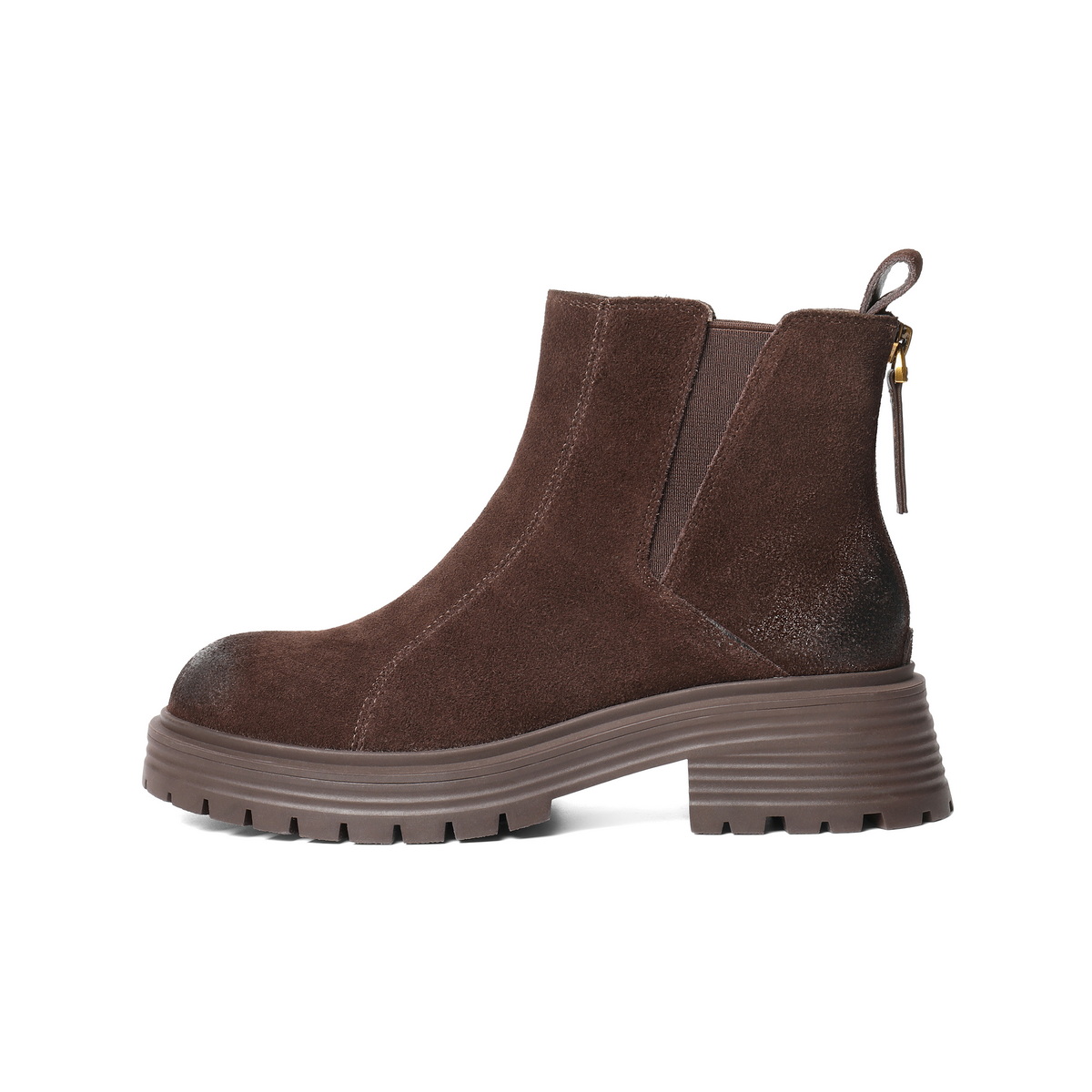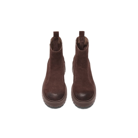 百丽复古褶皱切尔西靴女2025冬新厚底增高休闲短靴B2914DD5