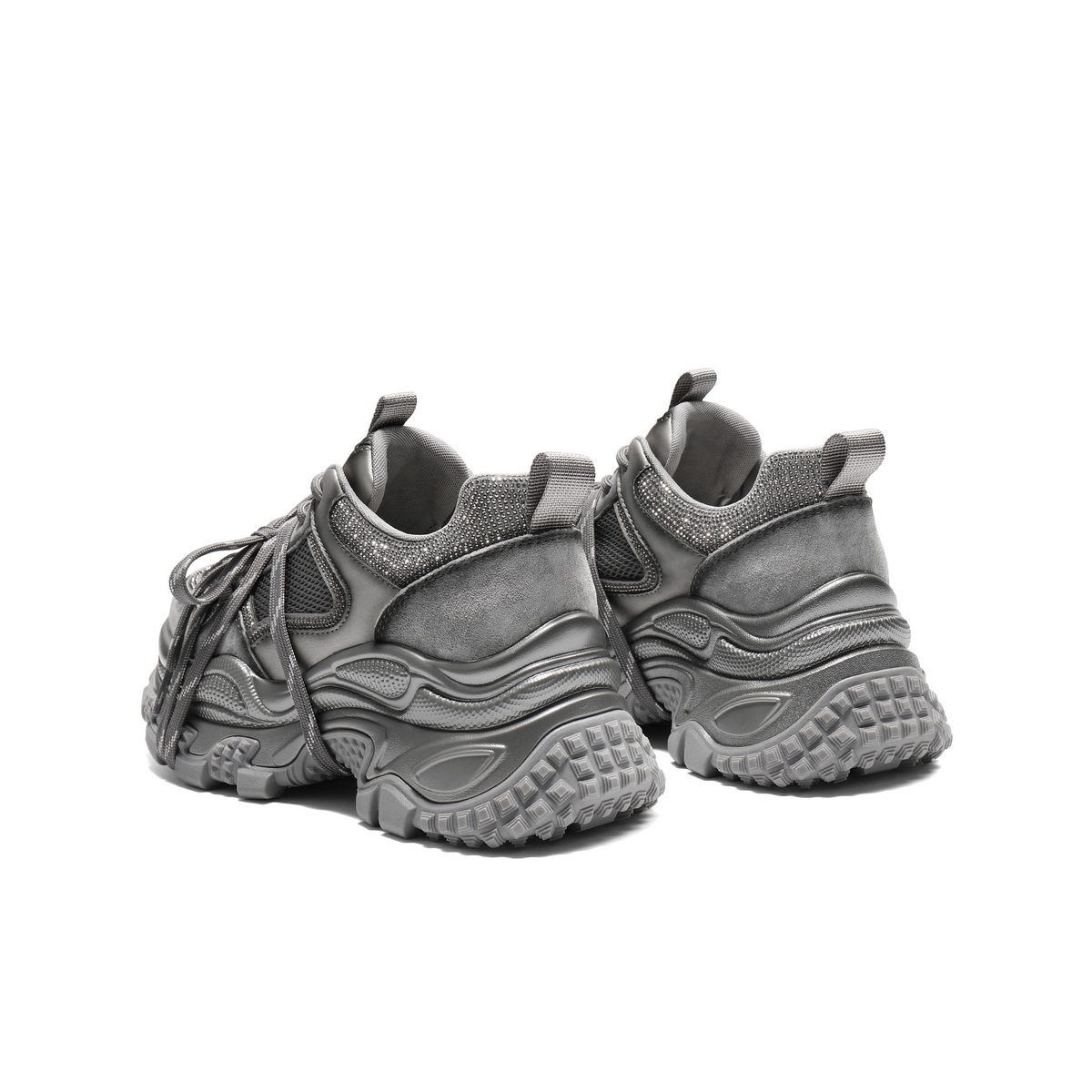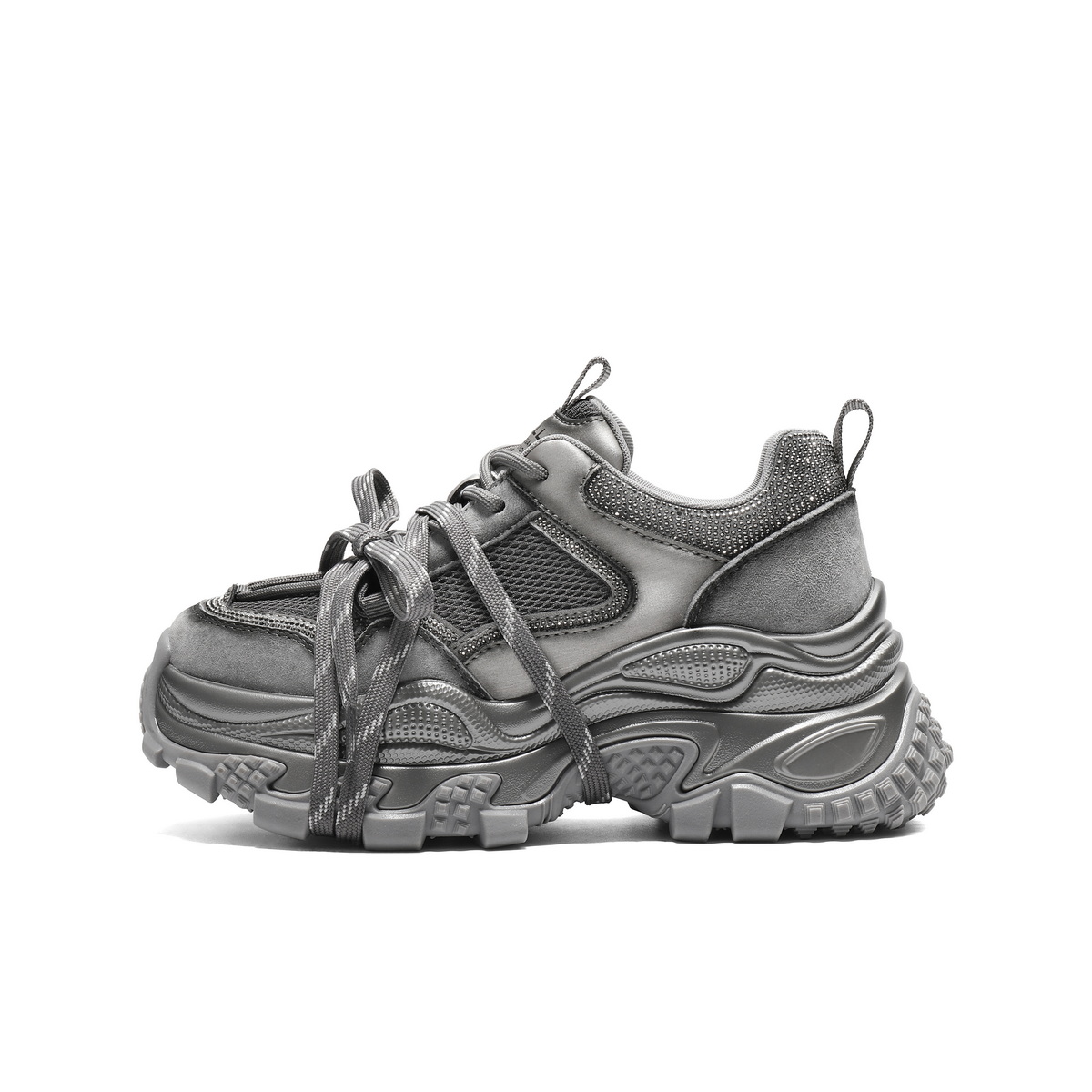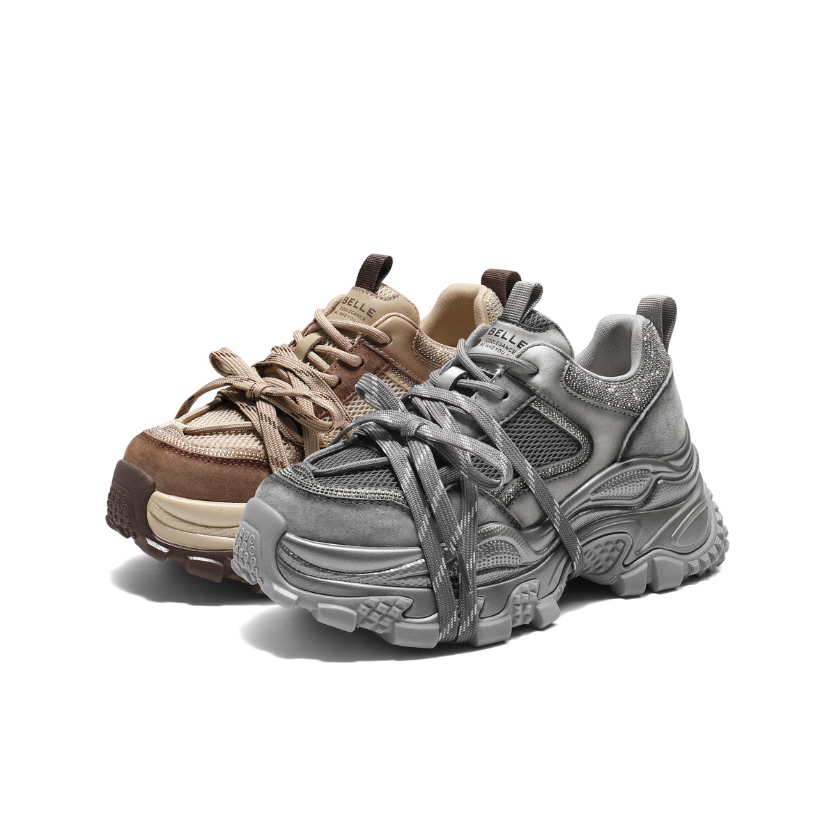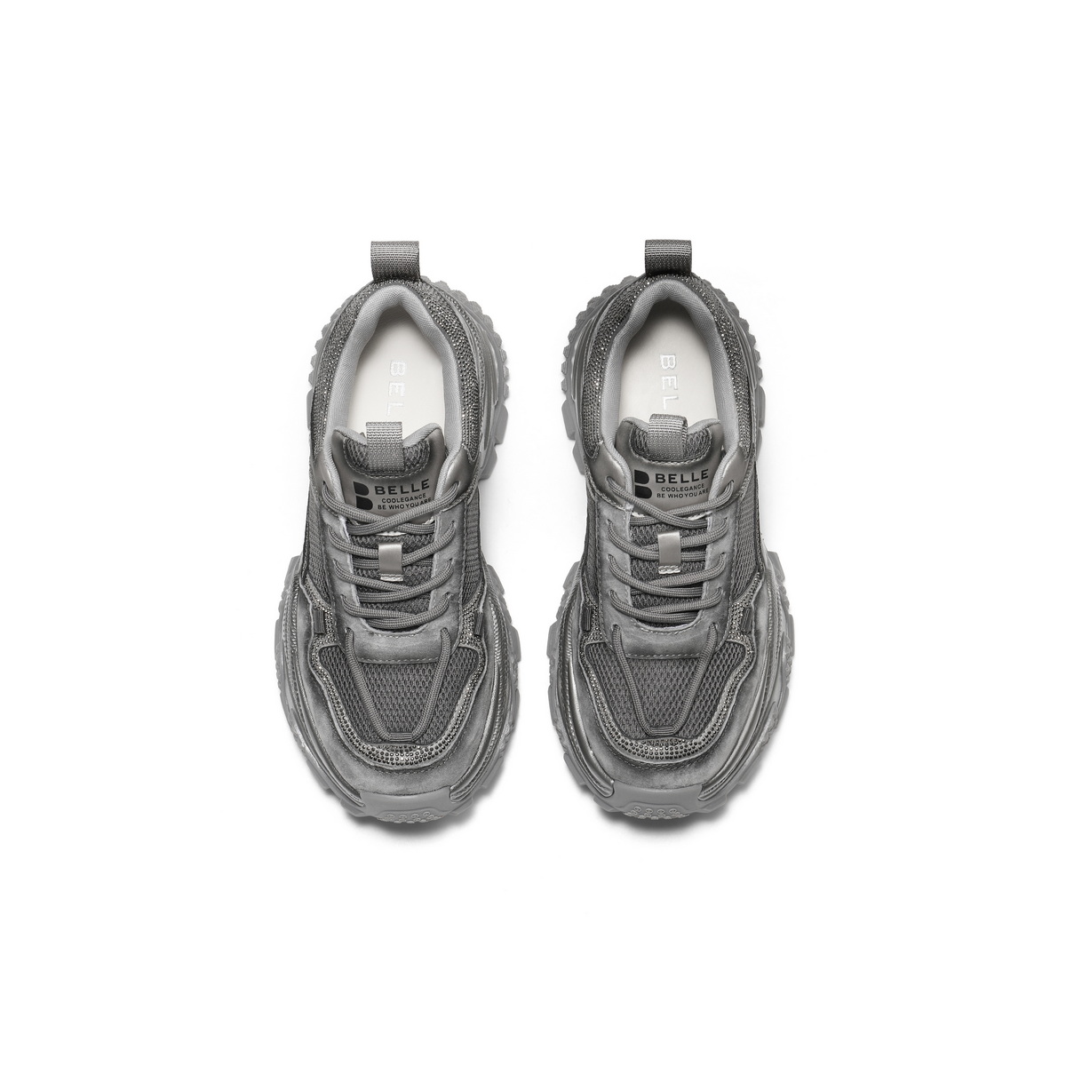 百丽时尚拼接网面水钻老爹鞋女2025秋新厚底增高休闲鞋B2927CM5