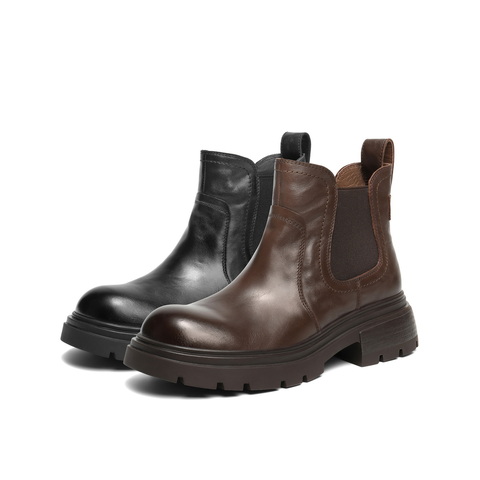 百丽复古擦色切尔西靴女2025冬新真皮厚底增高休闲短靴B2941DD5