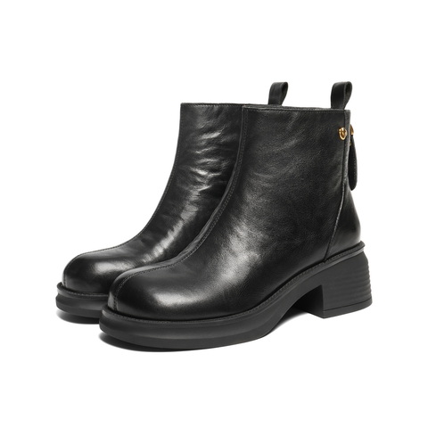 百丽复古民族风时装靴女2025冬新真皮粗跟增高休闲短靴B2955DD5