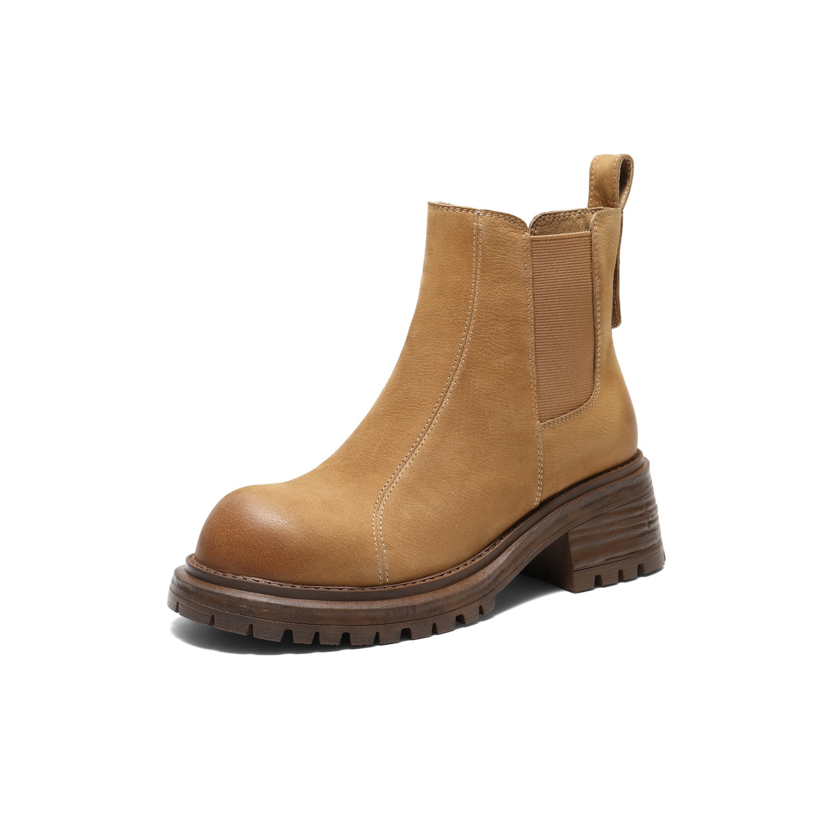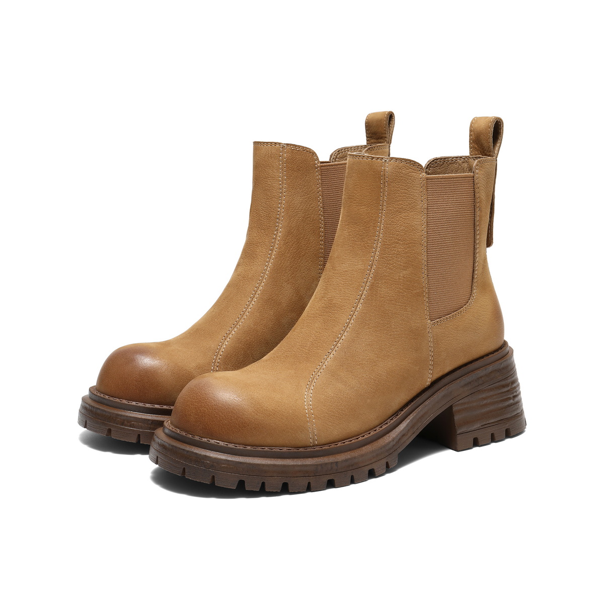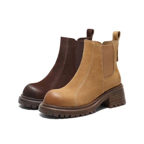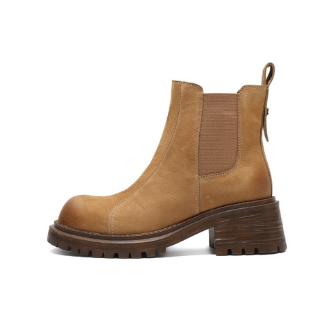 百丽复古擦色切尔西靴女2025栋新粗跟增高百搭休闲短靴B2969DD5