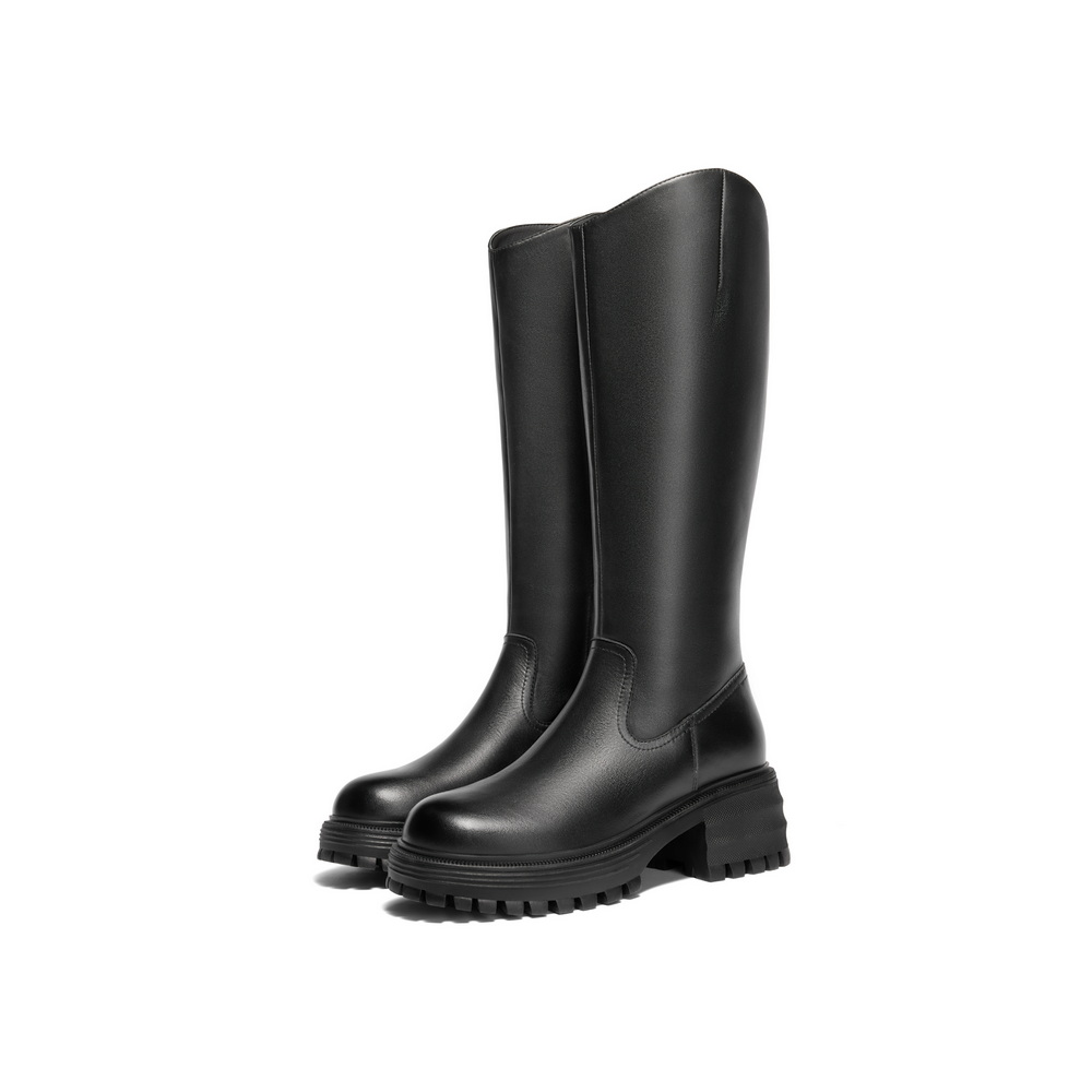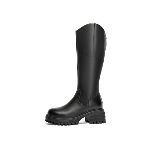 百丽休闲舒适骑士靴女2024冬新商场同款真皮显瘦长筒靴B8X1DDC4