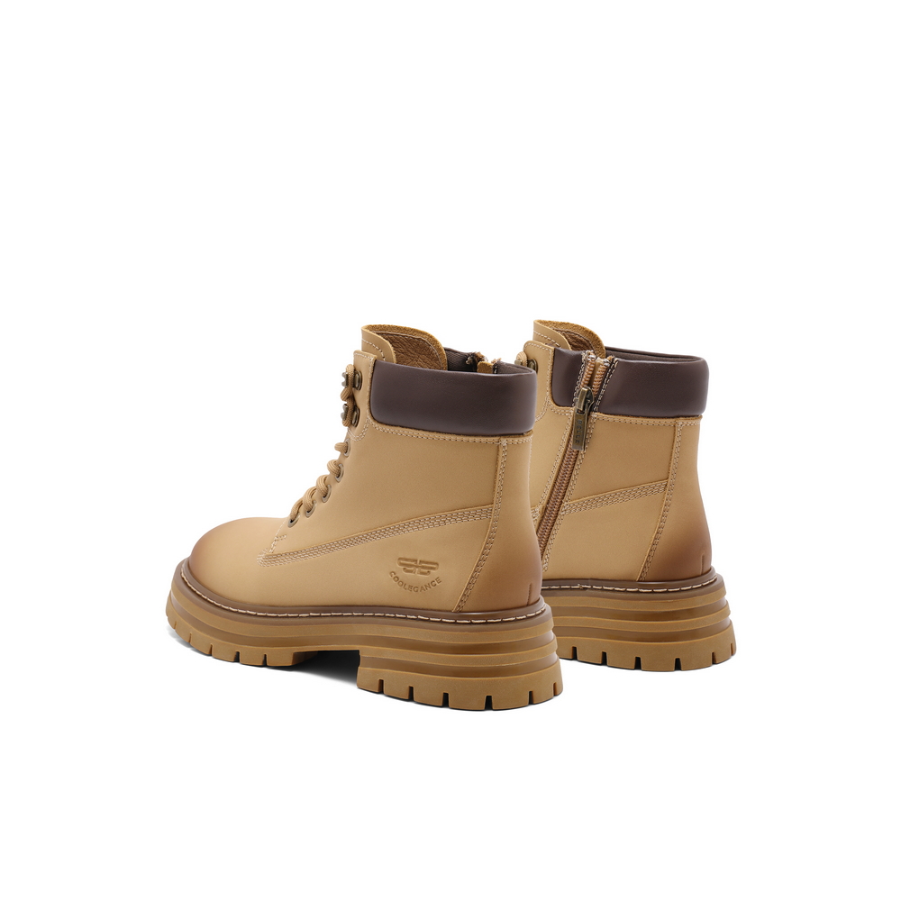 百丽复古厚底工装靴女2024冬新商场同款户外休闲大黄短靴B9R1DDD4
