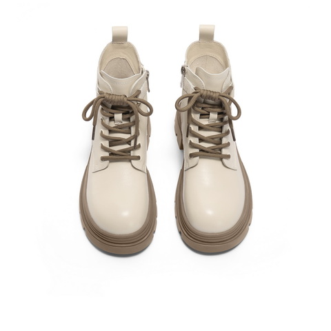 百丽舒适系带马丁靴女2024冬新商场同款真皮短筒靴B9T1DDD4